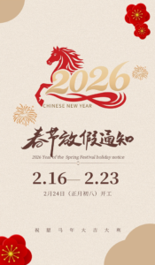 Notice on the Holiday Schedule for the Chinese Spring Festival in 2026January 20, 2026 Dear Clients : According to the spirit of the notice on the arrangement of some holidays in 2026 issued by… Read More »