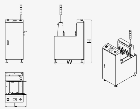200 board stack capability with 0.4 mm board thickness Variable speed in/speed out and PLC control System Board unload or pass-through mode Variable thickness adjust dial and Slide-width adjust SMC Cylinder and Fixed front rail Adjustable transfer height Interface mounting brackets SMEMA compatible