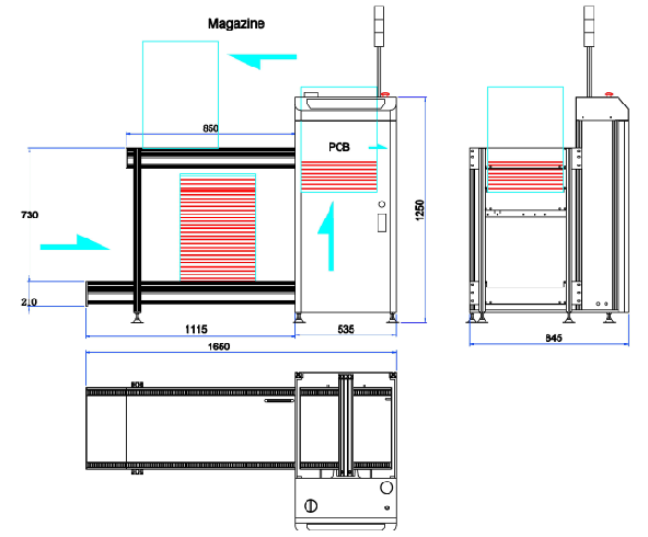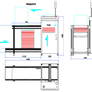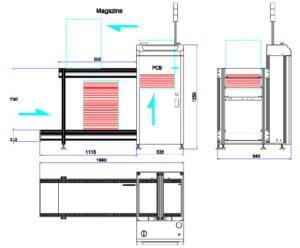 This unit is used for loading of PCBs from the production line.