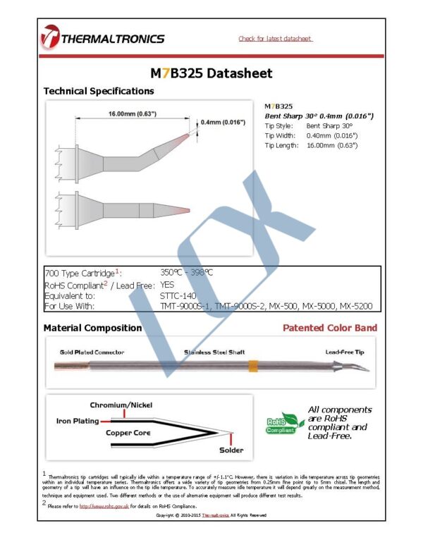 Full Name (Purchasing/Documentation): Thermaltronics M7B325 Bent Sharp 30° 0.4mm Soldering Tip
