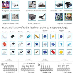 5. Wide Range of Components: Suitable for capacitors, transistors, LEDs, key switches, resistors, connectors, fuse blocks, and other vertical tape-packed materials.